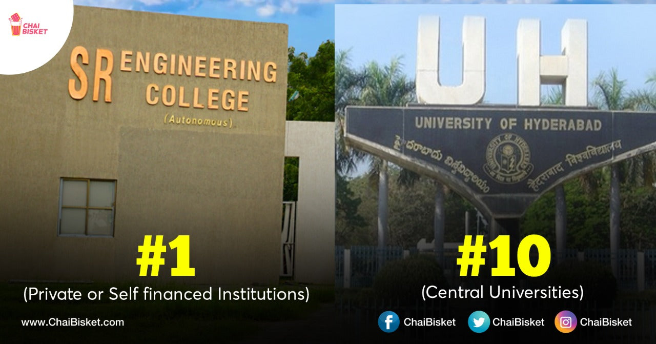 SR Engineering College (now SR University) in Warangal secured the top spot in private or self-financed institutes category, Where as CMR College of Engineering & Technology frome Hyderabad secured 5th place in the same category.