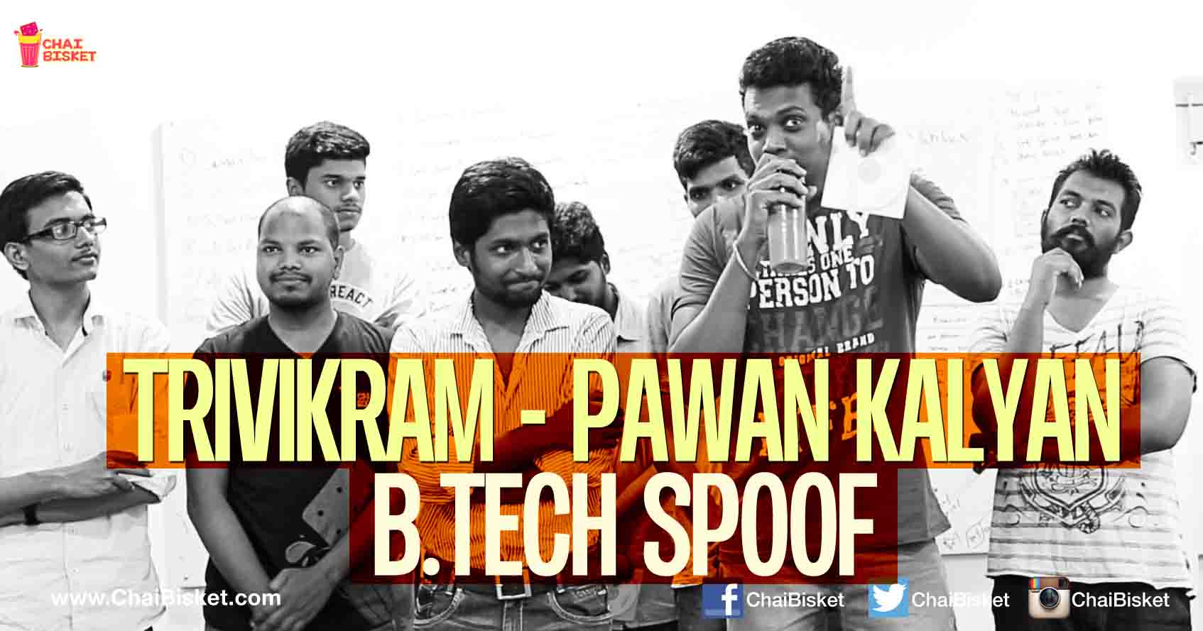 This hilarious B-Tech spoof of Trivikram and Powerstar Pawan Kalyan's speech at "A...Aa" audio launch will make your day.