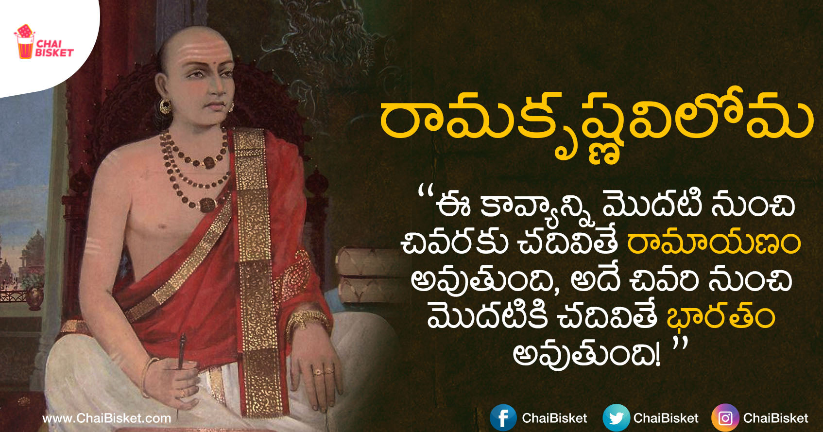 దైవజ్ఞసూర్య అనే పండితుడు 14వ శతాబ్దం లో "రామకృష్ణవిలోమ" అనే కావ్యం రచించారు. అందులో 40 వరకు శ్లోకాలున్నాయ్. ఈ కావ్యాన్ని మొదటి నుంచి చివరకు చదివితే రామాయణం అవుతుంది, అదే చివరి నుంచి మొదటికి చదివితే భారతం అవుతుంది! నాకు నమ్మకశ్యం కాలేదు, రెండు మహాగాధలను పత్రికపదకోశం లా ఒకే కావ్యం లో చెప్పడం... ఇంతకంటే గొప్ప భాషా ప్రయోగం ఏదైనా ఉంటుందా…?