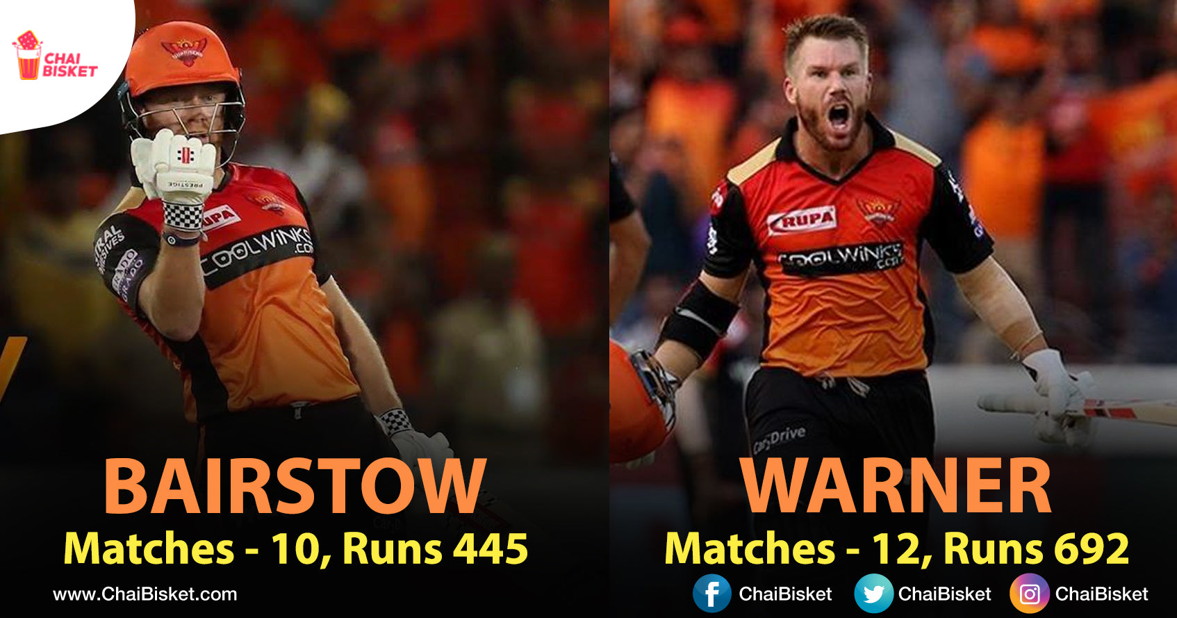 Aa Iddaru Opening digithe SRH sagam success ayinantha sambarapadipoyevaaru. Ashes Rivarly lo nuvva? nenaa? ani talapade iddaru Nuvvu Nenu antu kalisi SRH team ni gelipinchina matchulu chaala unnayi. Vallalo okaru England Batsmen Bairstow aithe inkokaru Australian Batsmen and Our very own Warner. Worldcup 19 preparations kosam team ni vadili velthunnaru. And here is glimpse of there journey in this season.
