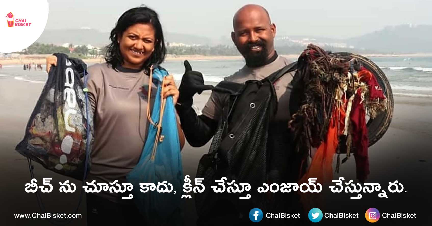 చూసి తట్టుకోలేకపోయారు: పెళ్లి తర్వాత కొంత కాలానికి మన విశాఖపట్నంలోనే స్కూబా డ్రైవింగ్ లో కోచింగ్ ఇచ్చేవారు. ప్రతిరోజు సముద్రంలోనే ఎక్కువ సమయం గడుపుతుండడం వల్ల అక్కడి సమస్యలు తెలుసుకున్నారు. చుట్టూ ప్లాస్టిక్, ఇతర వస్తువులు, చెత్తచెదారంతో చేపలు, తాబేళ్లు మొదలైన సముద్ర జీవుల ఇబ్బందులు చూసి తట్టుకోలేకపోయారు. రోజులో మన పనులు మనం చేసుకుంటూనే కొంత సమయం దీనిని క్లీన్ చెయ్యడానికి ఉపయోగించాలని నిర్ణయించుకున్నారు.