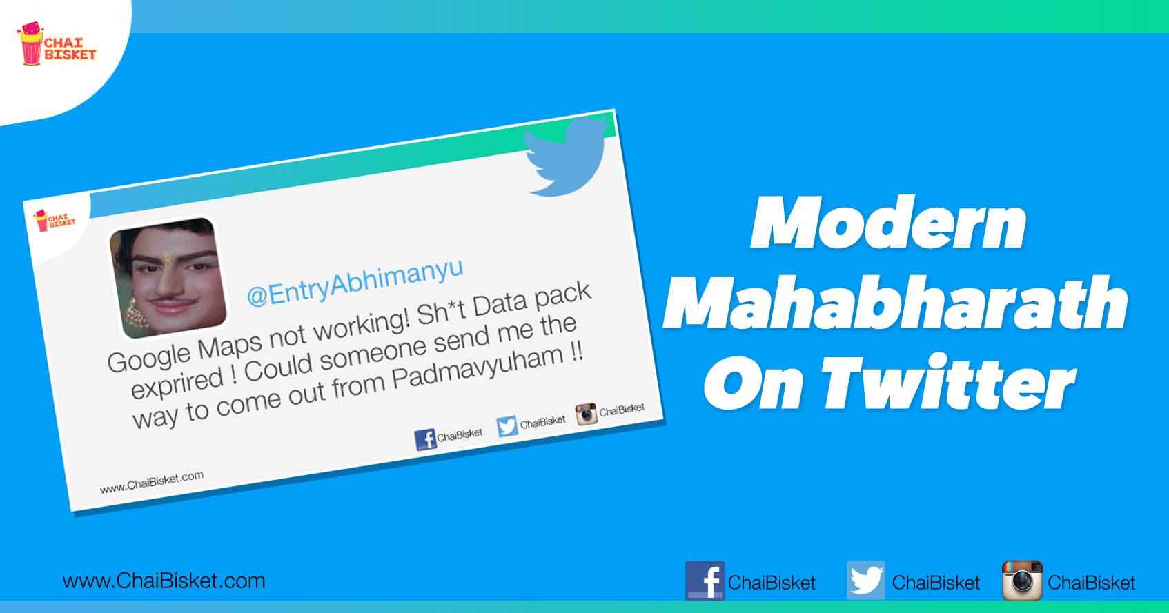 Puraanaalani Social media ni link cheyyadam bhale saradaga untadhi guru. Appatlo ‘Baahubali happened on Facebook’ ane mana article bhayankaramaina sensation anuko. So, ippudu Mahabharatha loki twitter ni enter chesam anna mata.