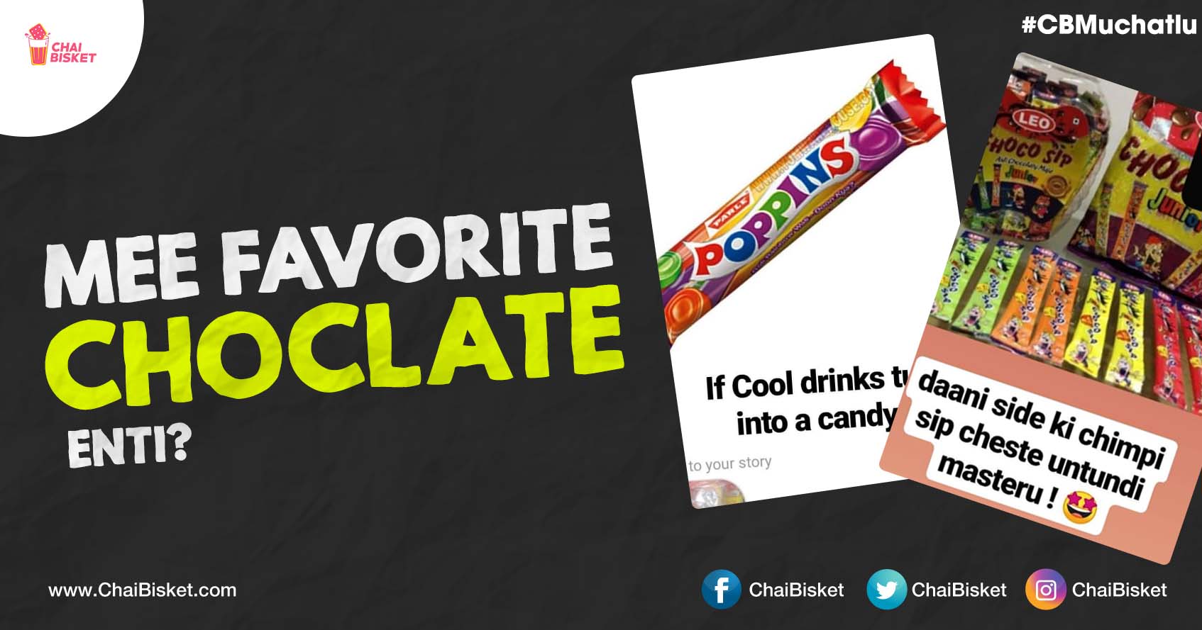 Kasepu andharam kalisi evari views vallu chepthu muchata pettachu ane alochana tho chaibisketeers ane instagram page lo rojuko muchataa peduthu unnam, manchi response tho andharu kasepu ala oka melody song laaga anni tensions ni marchipoi relaxed ga matladuthunnaru kuda, So ala ee roju manadhari favorite ayina chocolates gurinchi muchata start chesthe, mana childhood ni gurthu thechela mana valla response vachindi.. meere oh look eyandi.